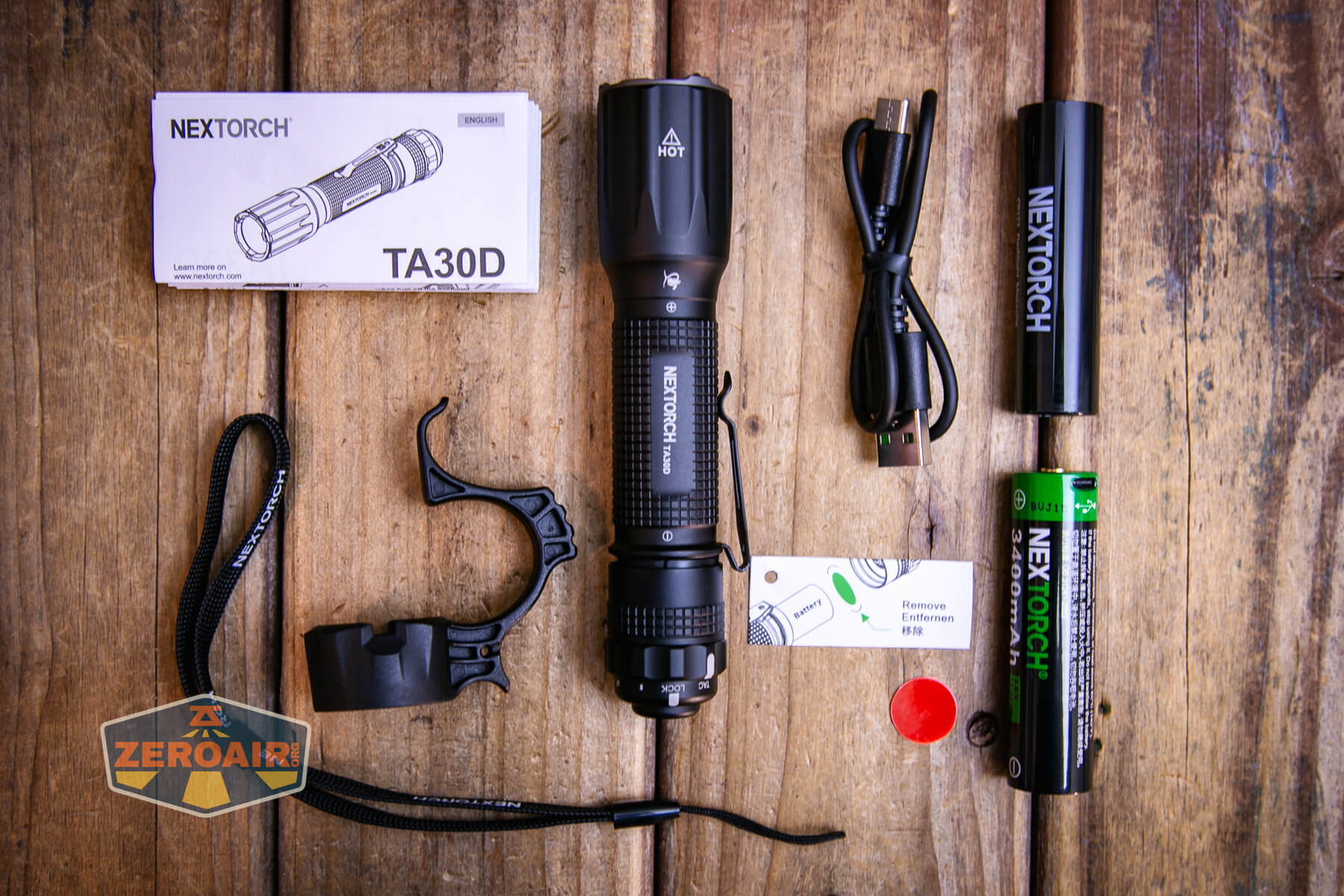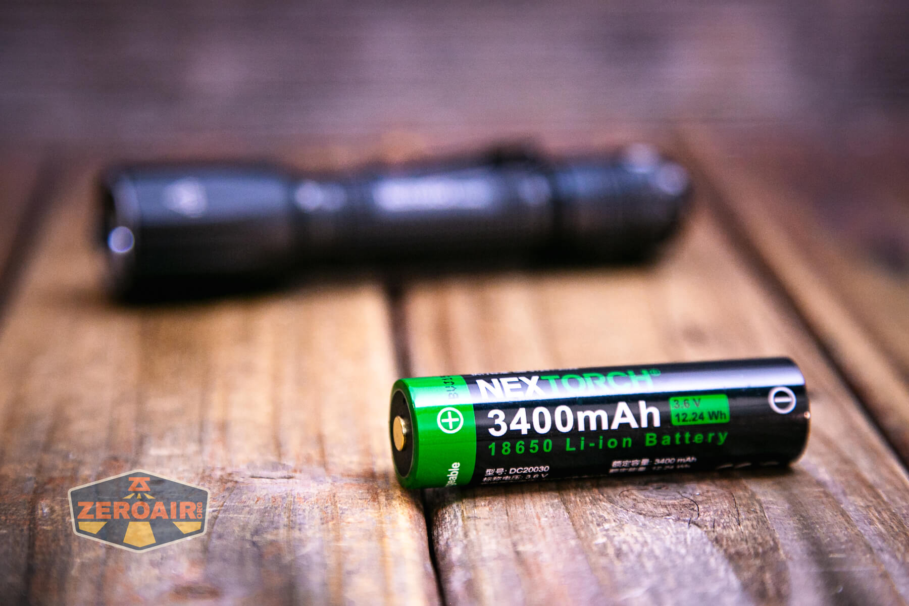 Nextorch includes a single 18650 cell with the TA30D. It’s a 3400mAh cell and has a button top.