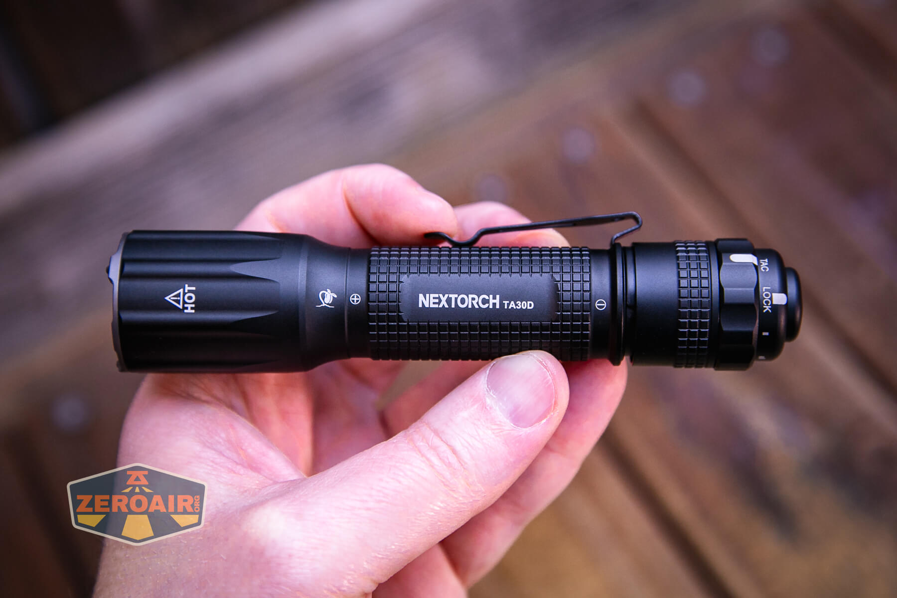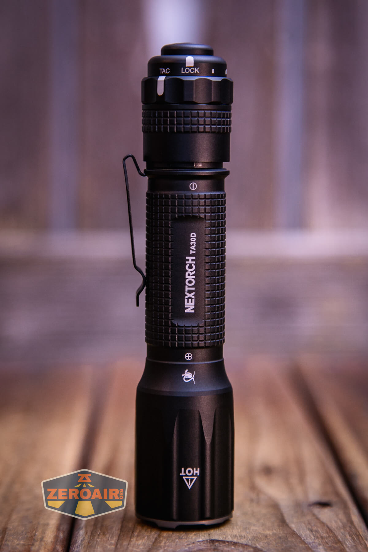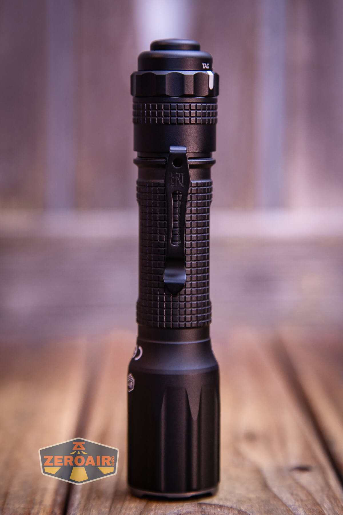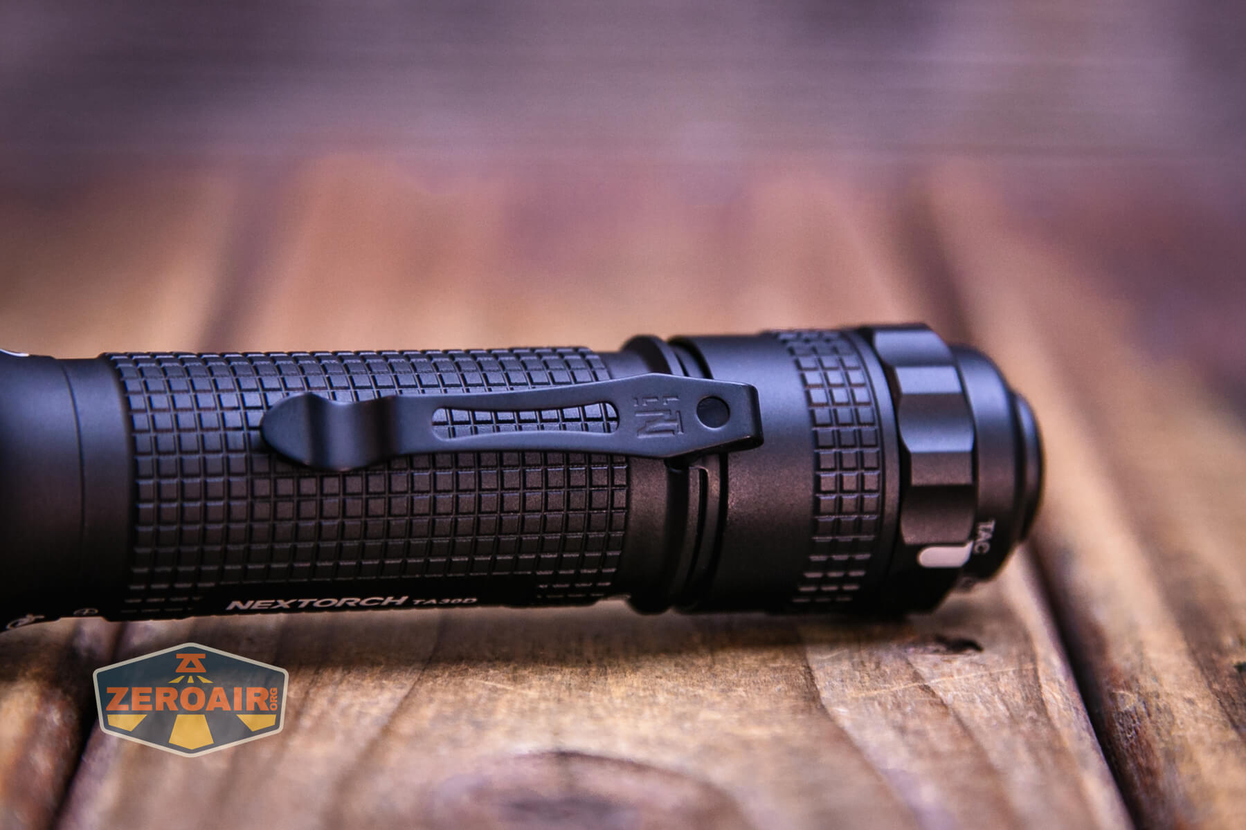 The Nextorch TA30D Tactical One-Step-Strobe flashlight has a nice friction-fit pocket clip that attaches only to the tail end. This clip isn’t designed as a “deep-carry” clip, but due to the length of the light, it does function that way.