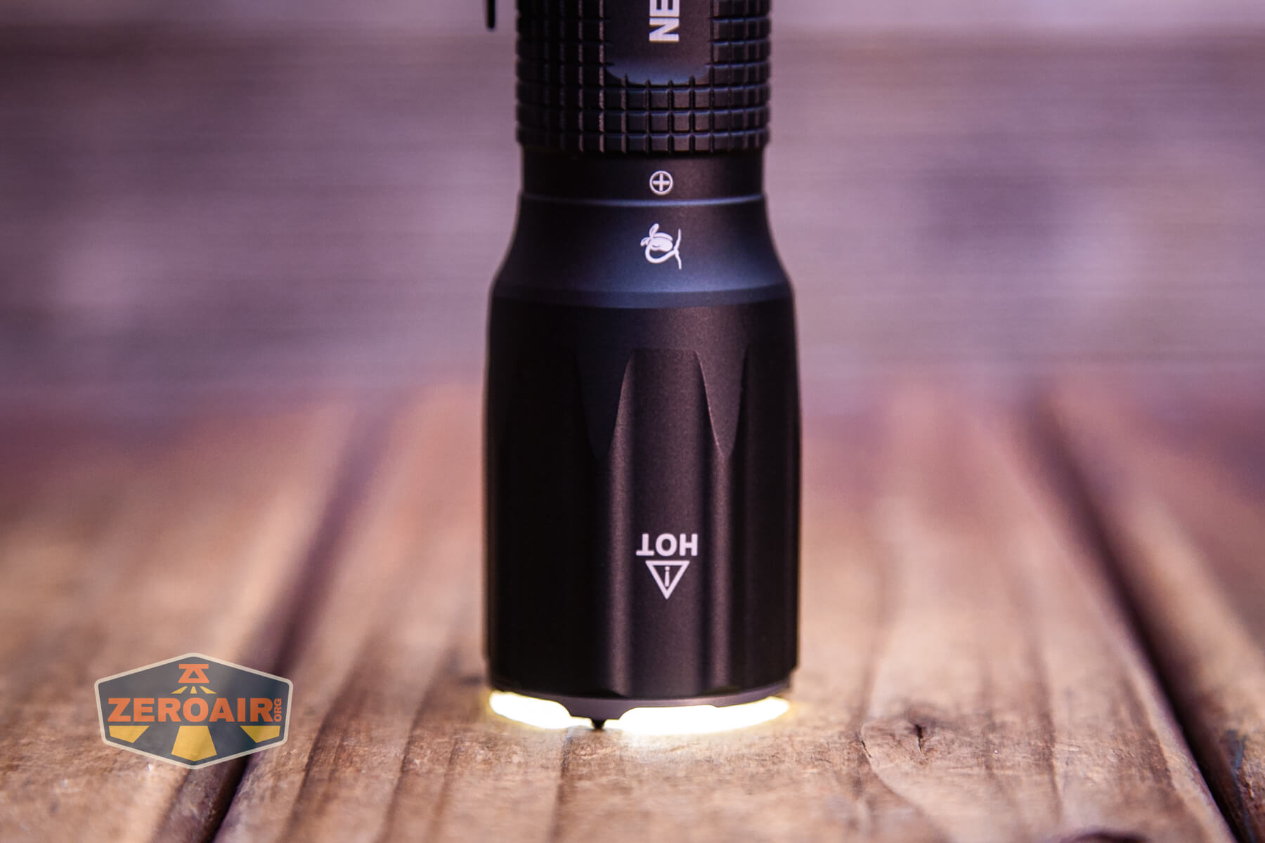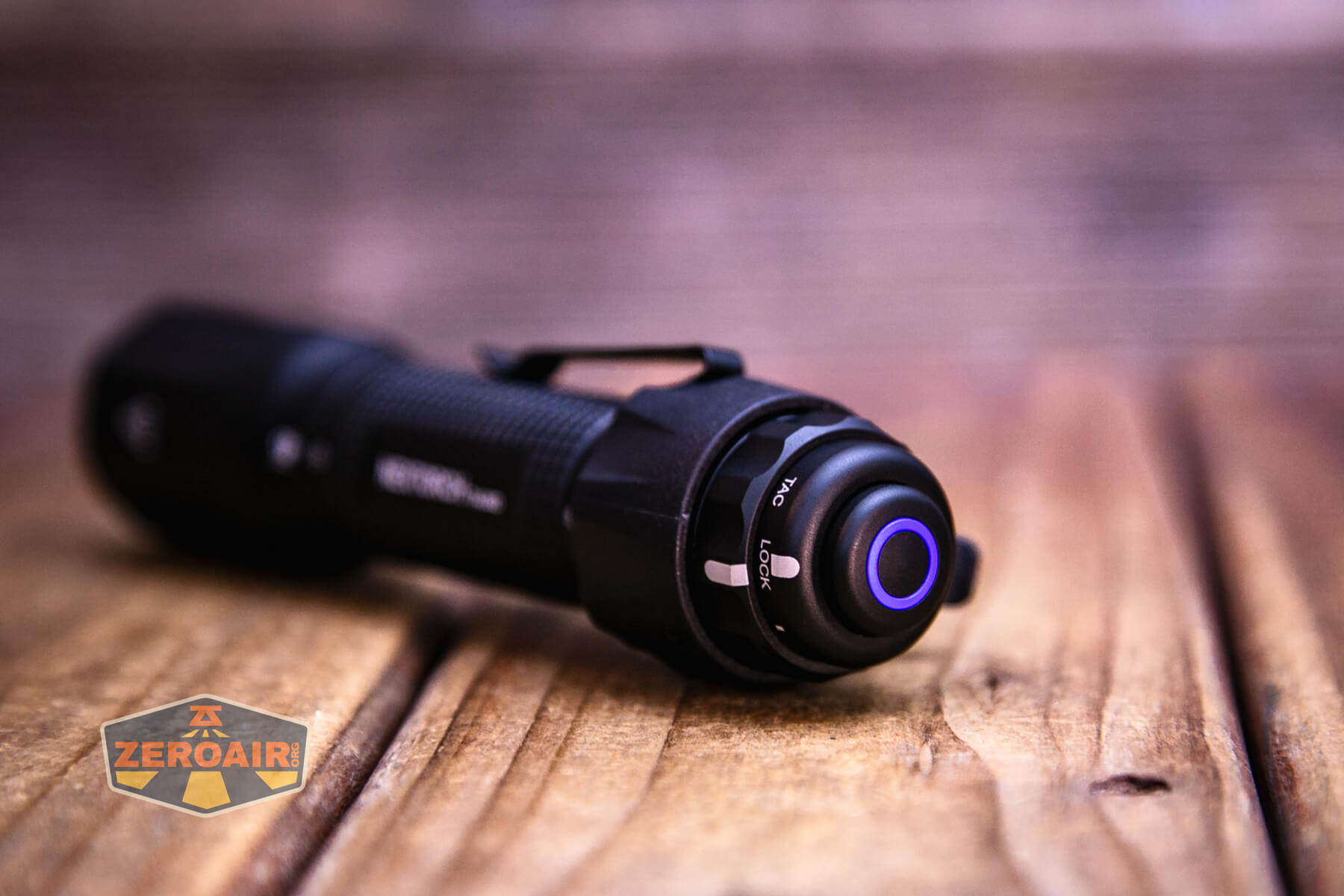 There’s one switch on the Nextorch TA30D Tactical One-Step-Strobe flashlight. It’s a tail e-switch and functions much like a forward mechanical clicky. The switch, however, doesn’t click. That plays into how “one-step” strobe the light is! Below, you can see the switch indicator ring lit in blue.