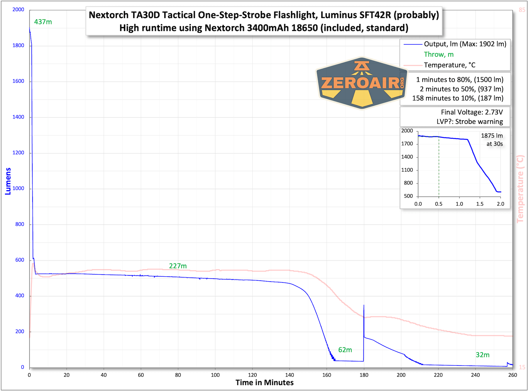 | Measured Lumens (at 30s) | 1875 (85.2% of claim)^ |