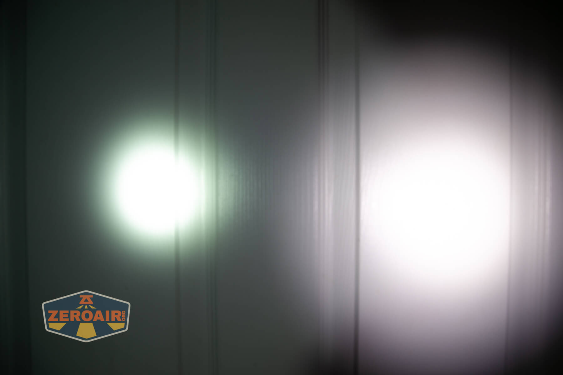 I keep the test flashlight on the left and the BLF-348 reference flashlight on the right. These photos are taken around 18 inches from the door.