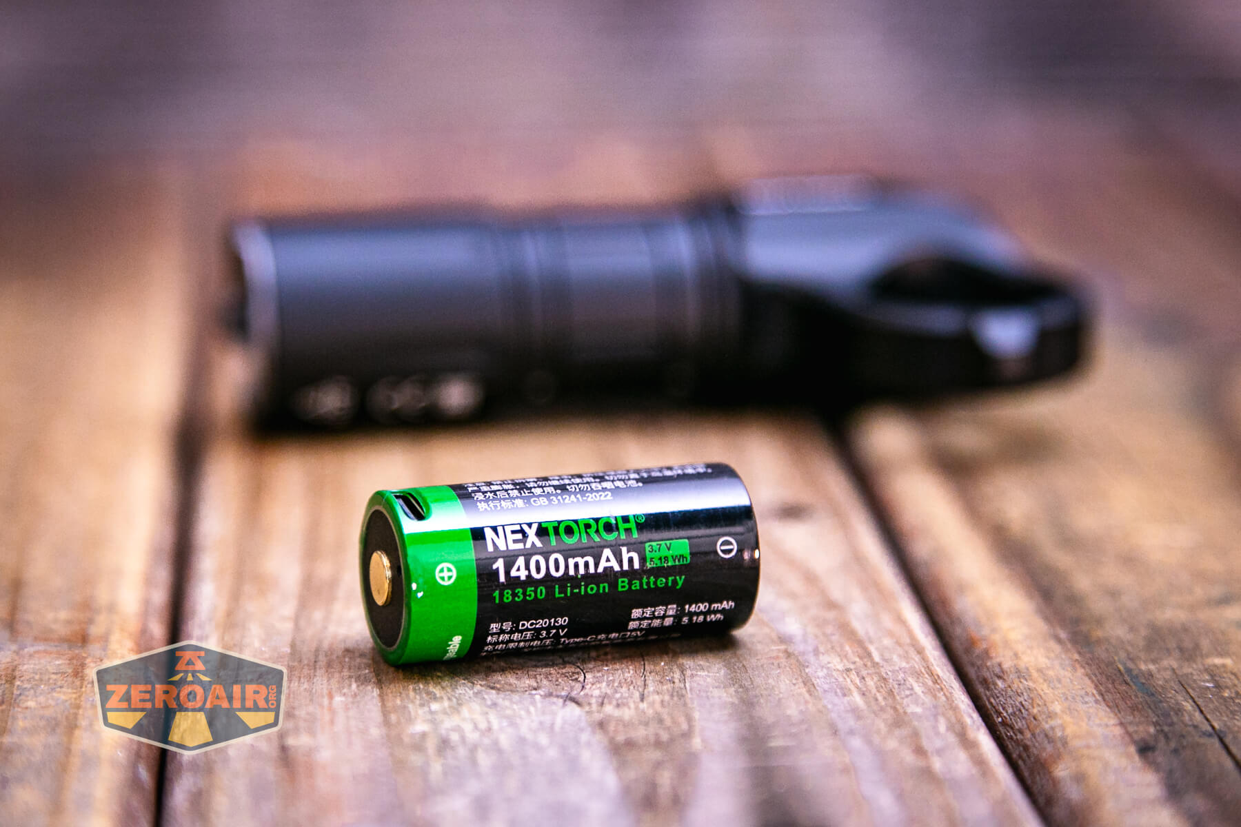 The Nextorch Artorch Compact EDC tactical flashlight is powered by a single 18350. Nextorch includes this 1400mAh cell.