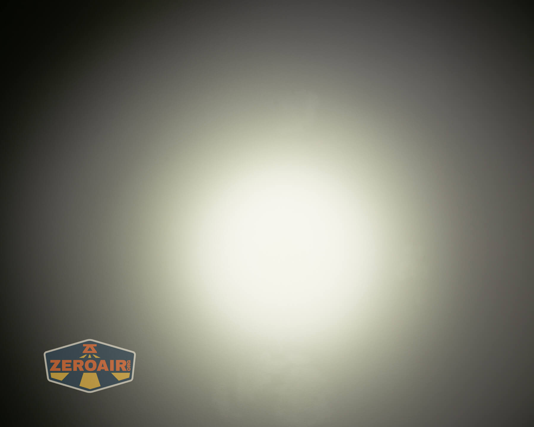 Wuben states these white emitters as 5000K Luminus SST-36F. I don’t know that emitter, but we can see more testing below. Each emitter has a small orange peel reflector. The third (and different) emitter below is the UV emitter.