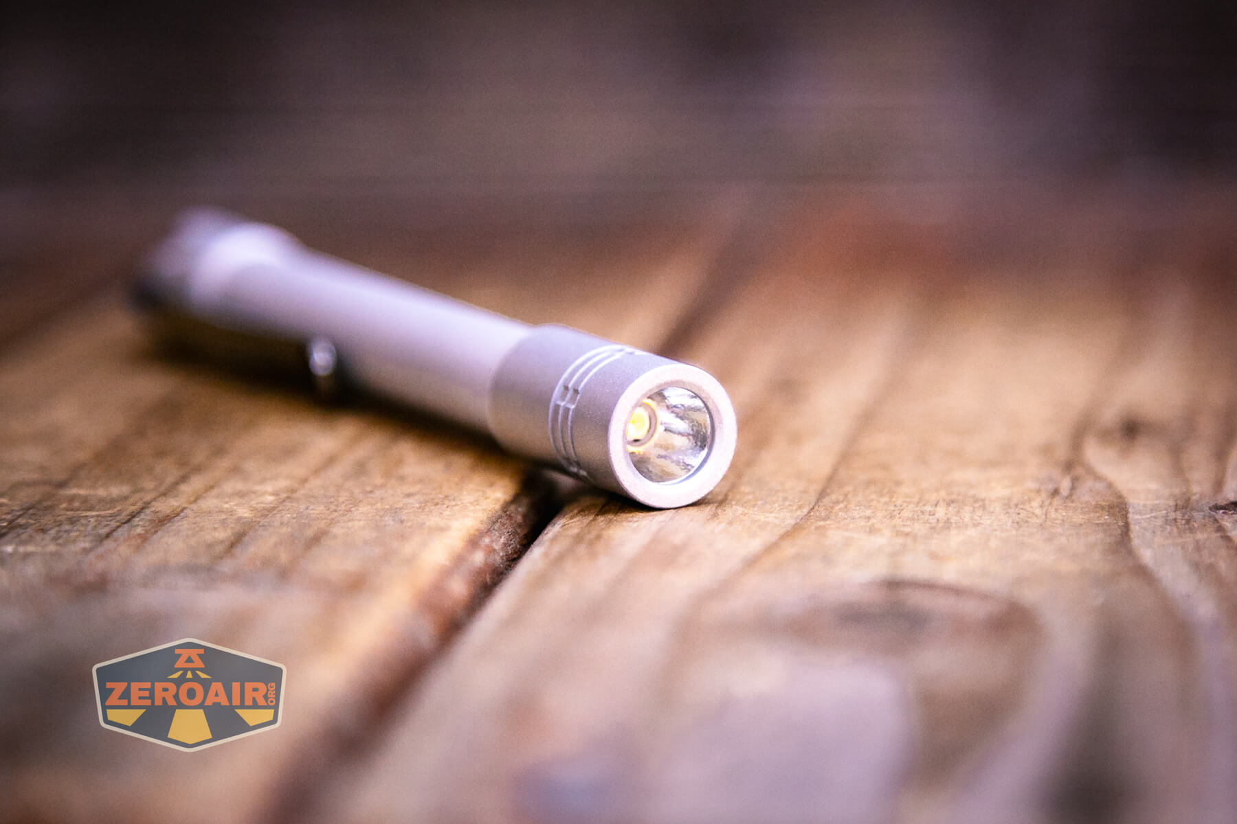 One of the updates on this ReyLight Penlight MkII Aluminum flashlight in titanium is that the light uses a Nichia 519a.