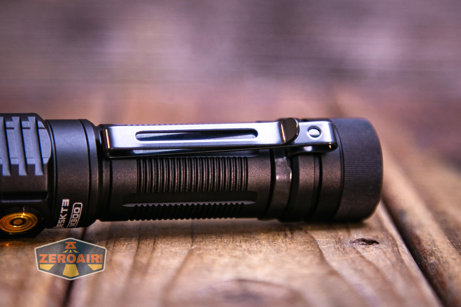 I didn’t get a pic of the Skilhunt M300 V4 F50S flashlight with the pocket clip attached, but here’s the black body version (review upcoming) with the pocket clip. This is a two-way clip and lives only on the tail end of the flashlight.