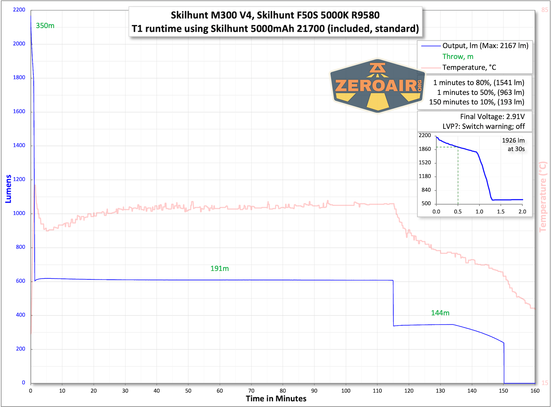 | Measured Lumens (at 30s) | 1926 (87.5% of claim)^ |
