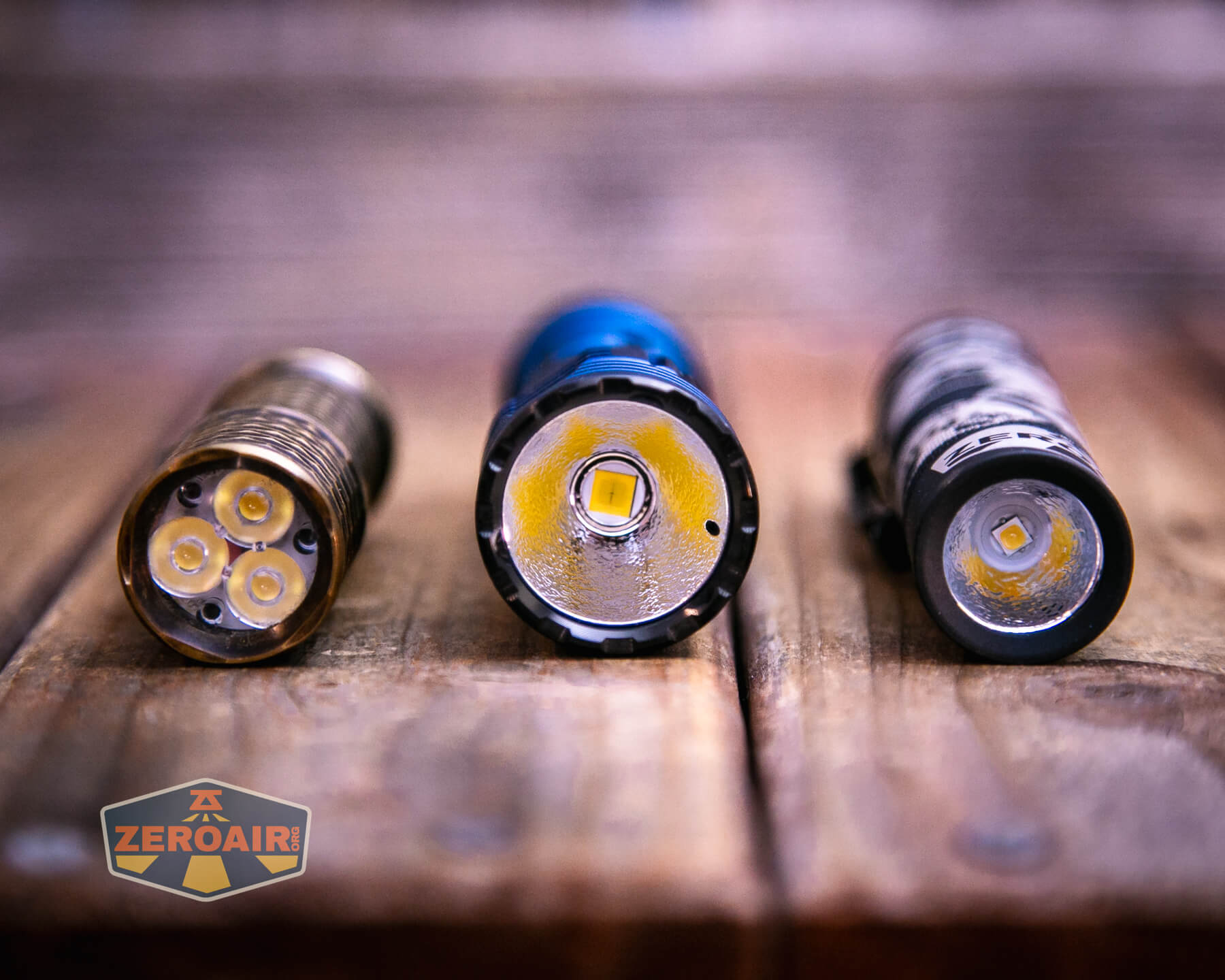 Also in the photo above, my Standard Reference Material (SRM) flashlight is the Hanko Machine Works Trident, an 18350 light. While I have not reviewed or tested the Gunner Grip version seen here, I have tested a Hanko Machine Works Trident Total Tesseract in brass. I love the Trident, and it’s a striking contrast to the inexpensive Convoy S2+, another great SRM.