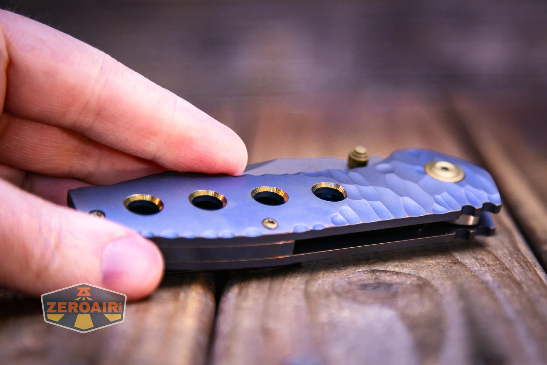 This version has titanium scales, too. They’ve been anodized blue. But not totally blue! The inside of those holes in the scales are bronzed. It’s really incredible.