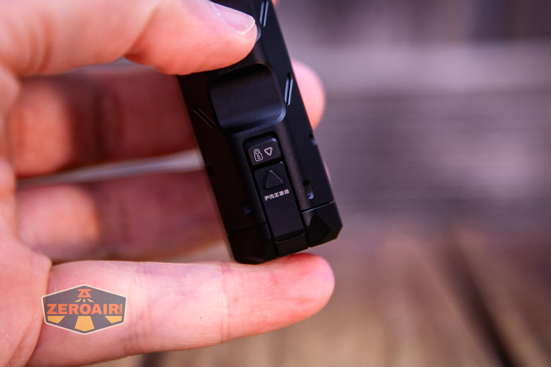 That tailcap (above) swings open after pressing this button (below). There’s a lock for this button, too.