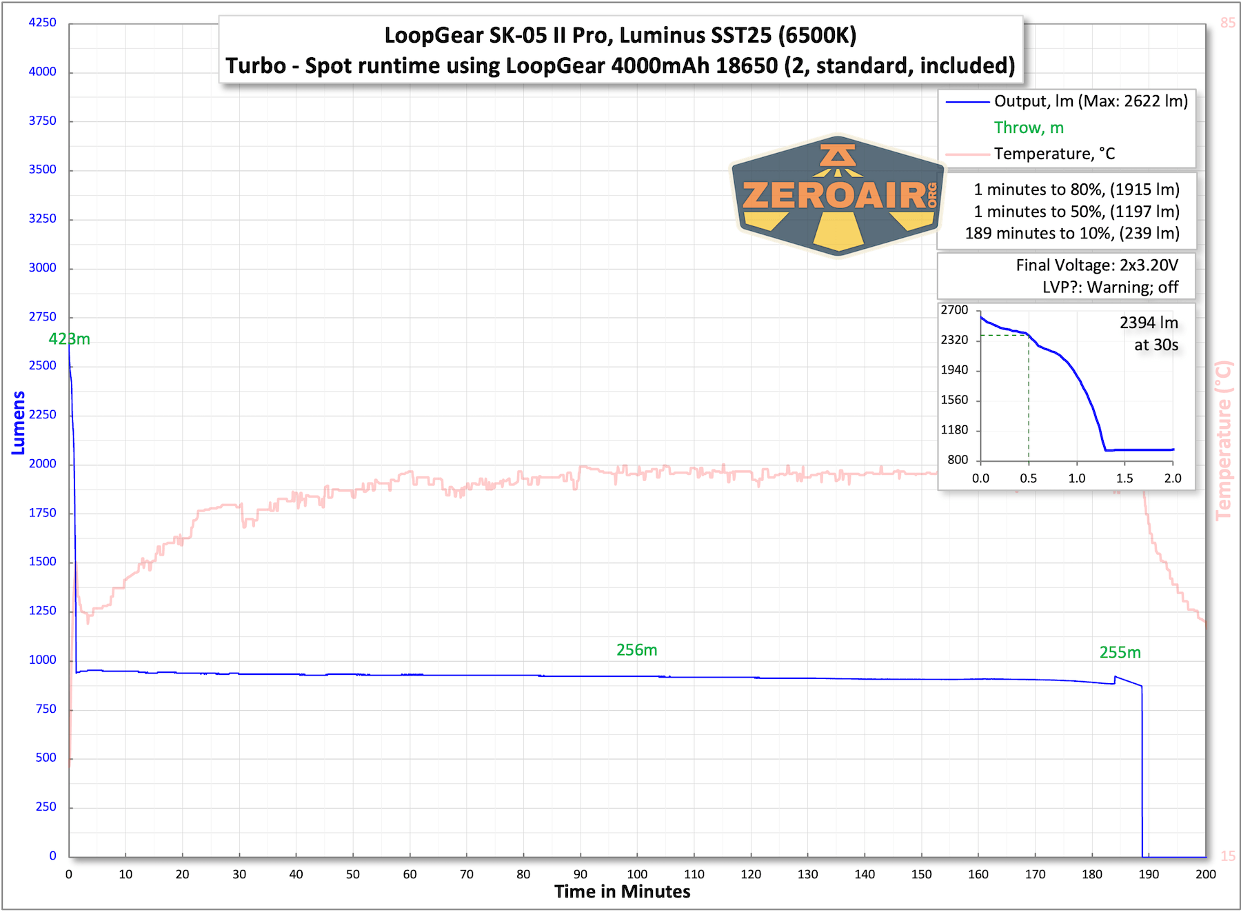 ^ Measurement disclaimer: Testing flashlights is my hobby. I use hobbyist-level equipment for testing, including some I made myself. Try not to get buried in the details of manufacturer specifications versus measurements recorded here; A certain amount of difference (say, 10 or 15%) is perfectly reasonable.