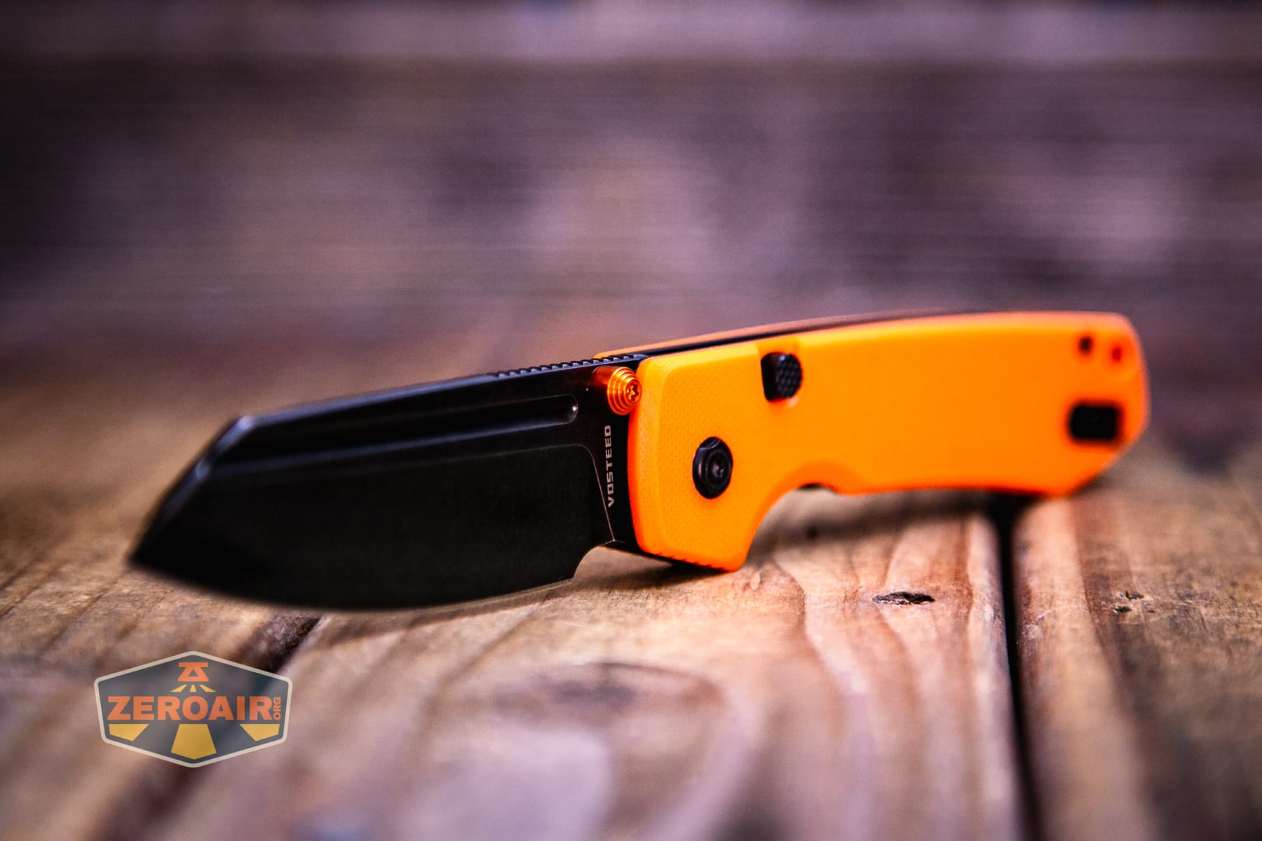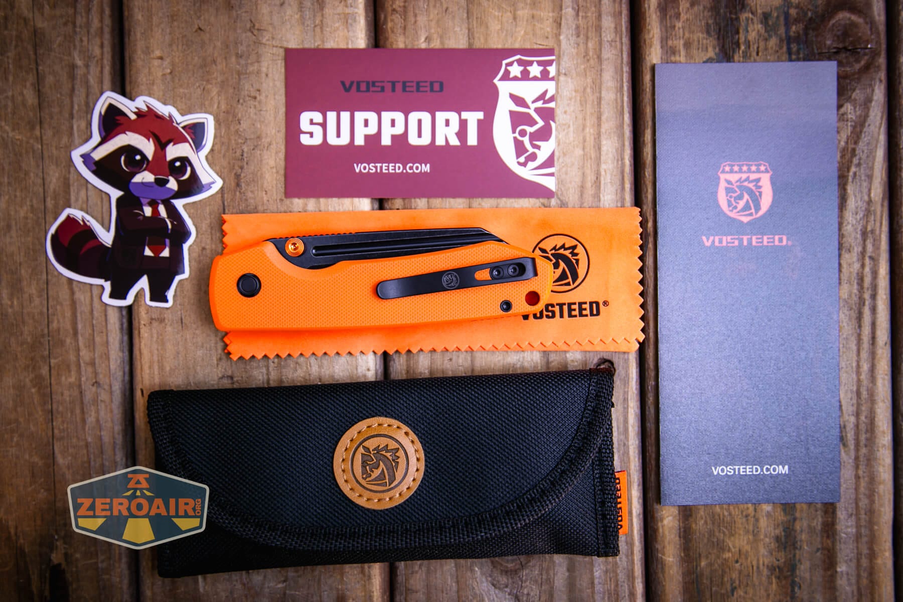 Vosteed Raccoon TLL Orange G10 knife branding