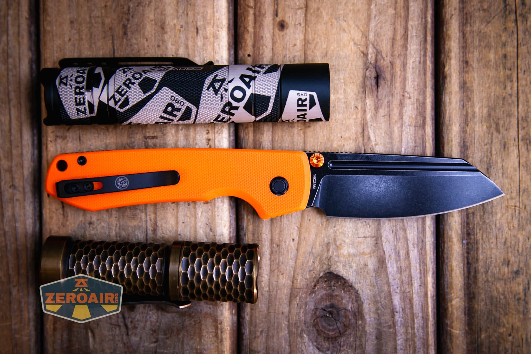Below you can see the Vosteed Raccoon knife with the venerable Convoy S2+. The version below is a custom laser-engraved Convoy S2+ host by GadgetConnections.com. I did a full post on an engraved orange host right here! Or go straight to GadgetConnections.com to buy your Convoy S2+ now!