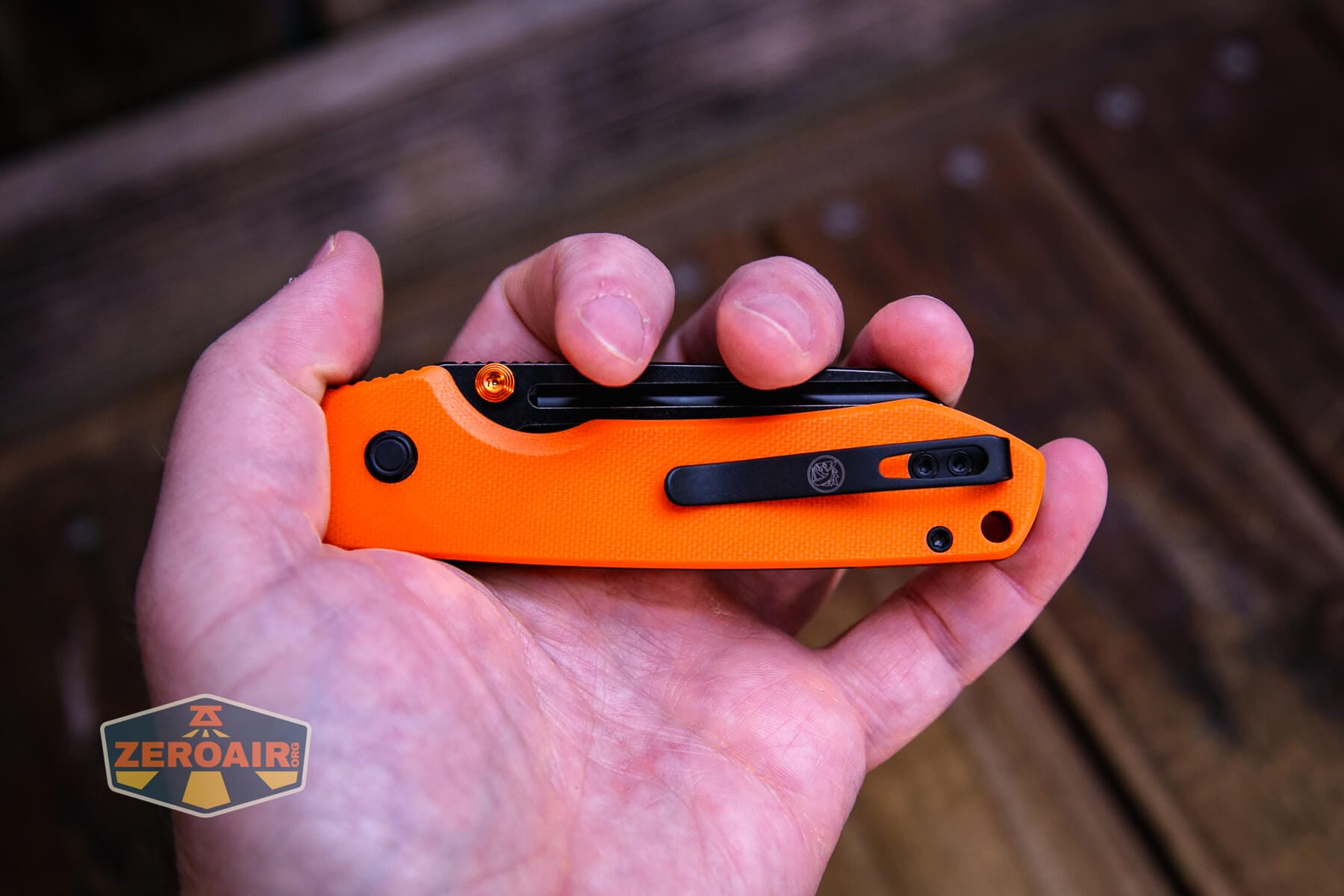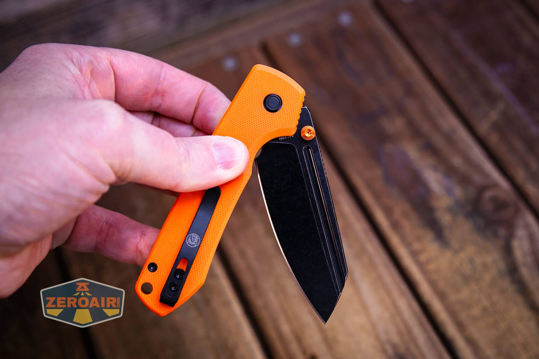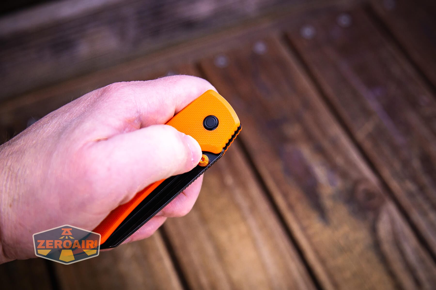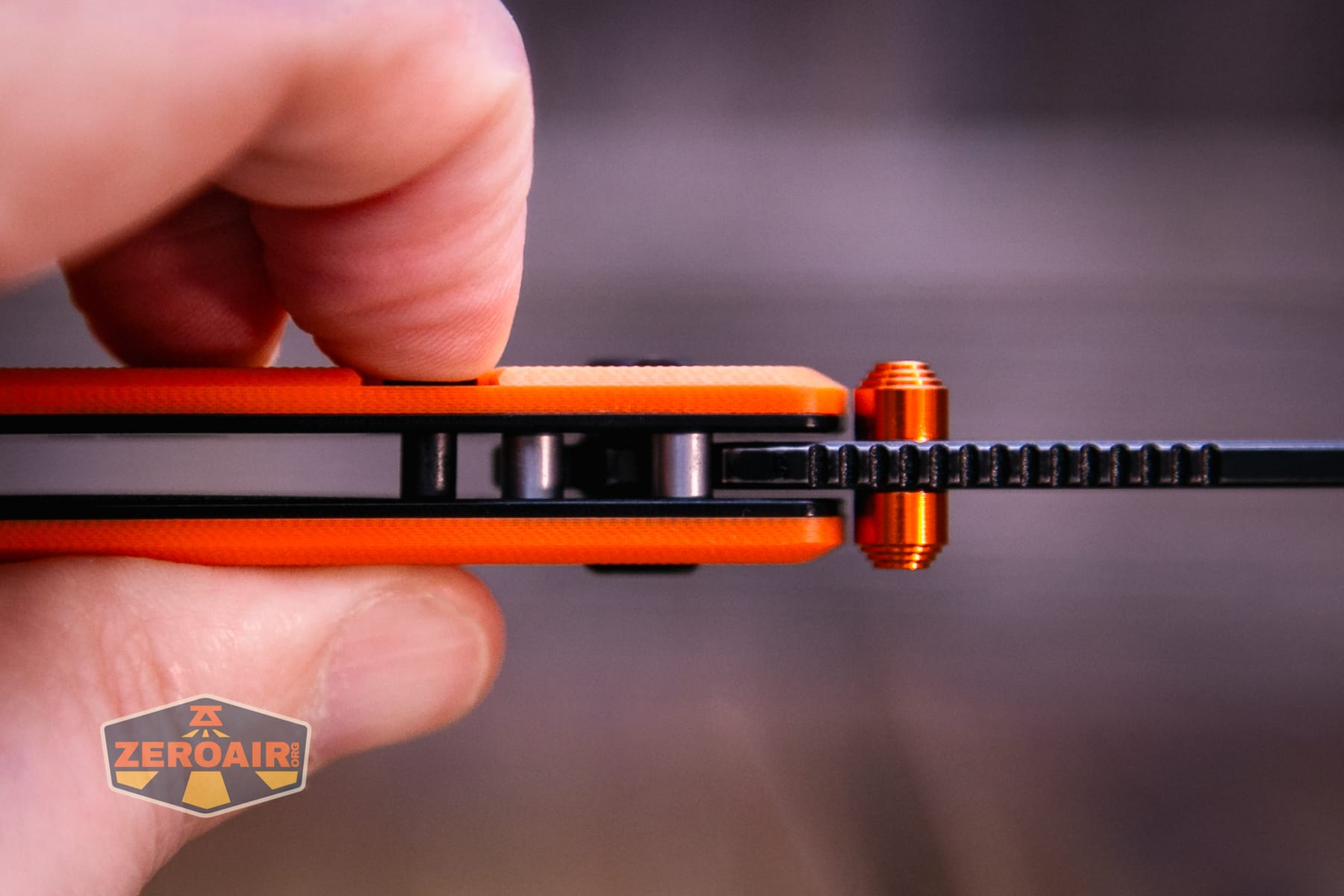 The Vosteed Raccoon TLL Orange G10 knife is a nice knife, made even better with this updated blade shape and orange G10. The button lock on this ceramic ball-bearing knife works great for actuating the top liner lock. The Vosteed Raccoon TLL Orange G10 knife is just a nice, fun, and reasonably priced knife!