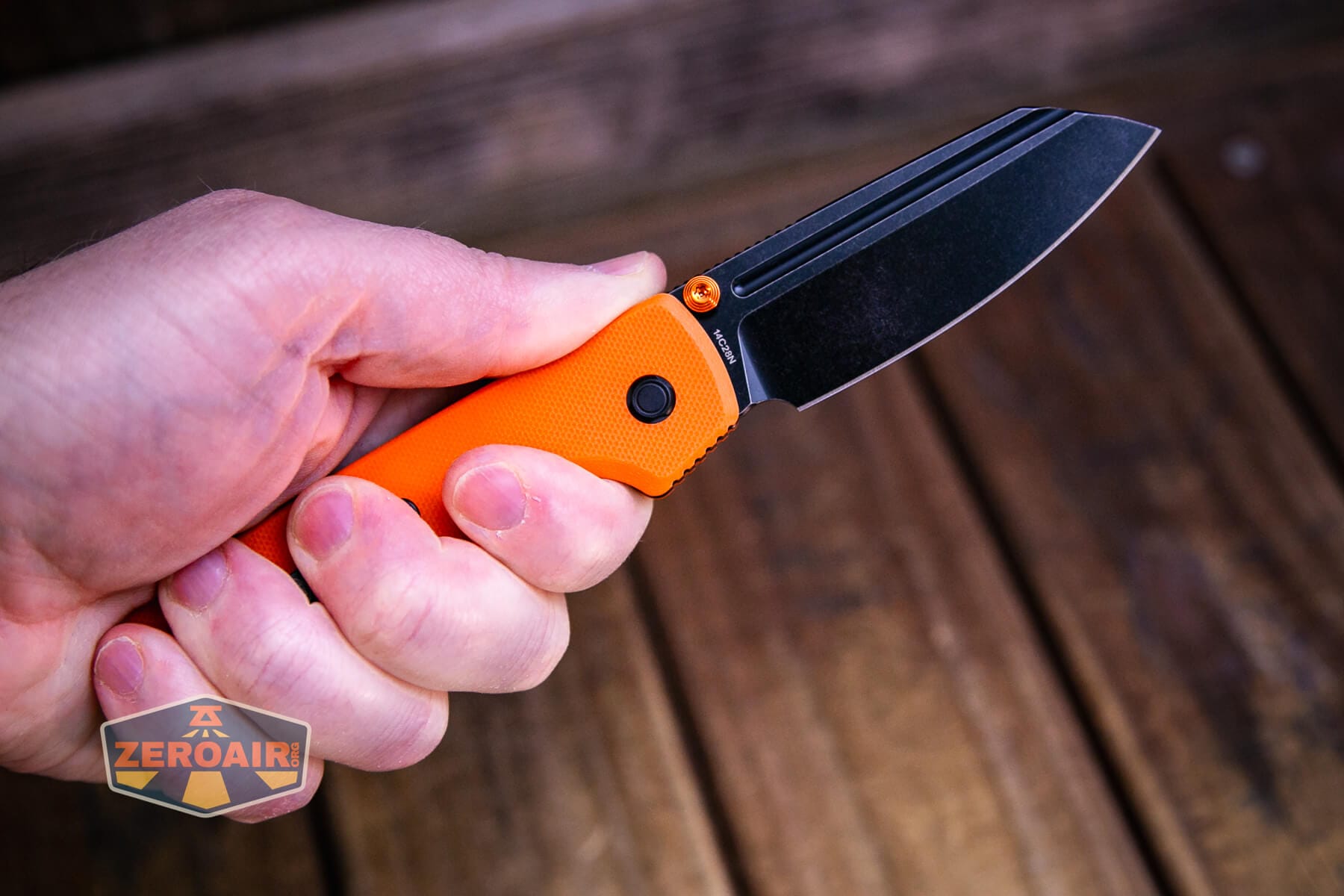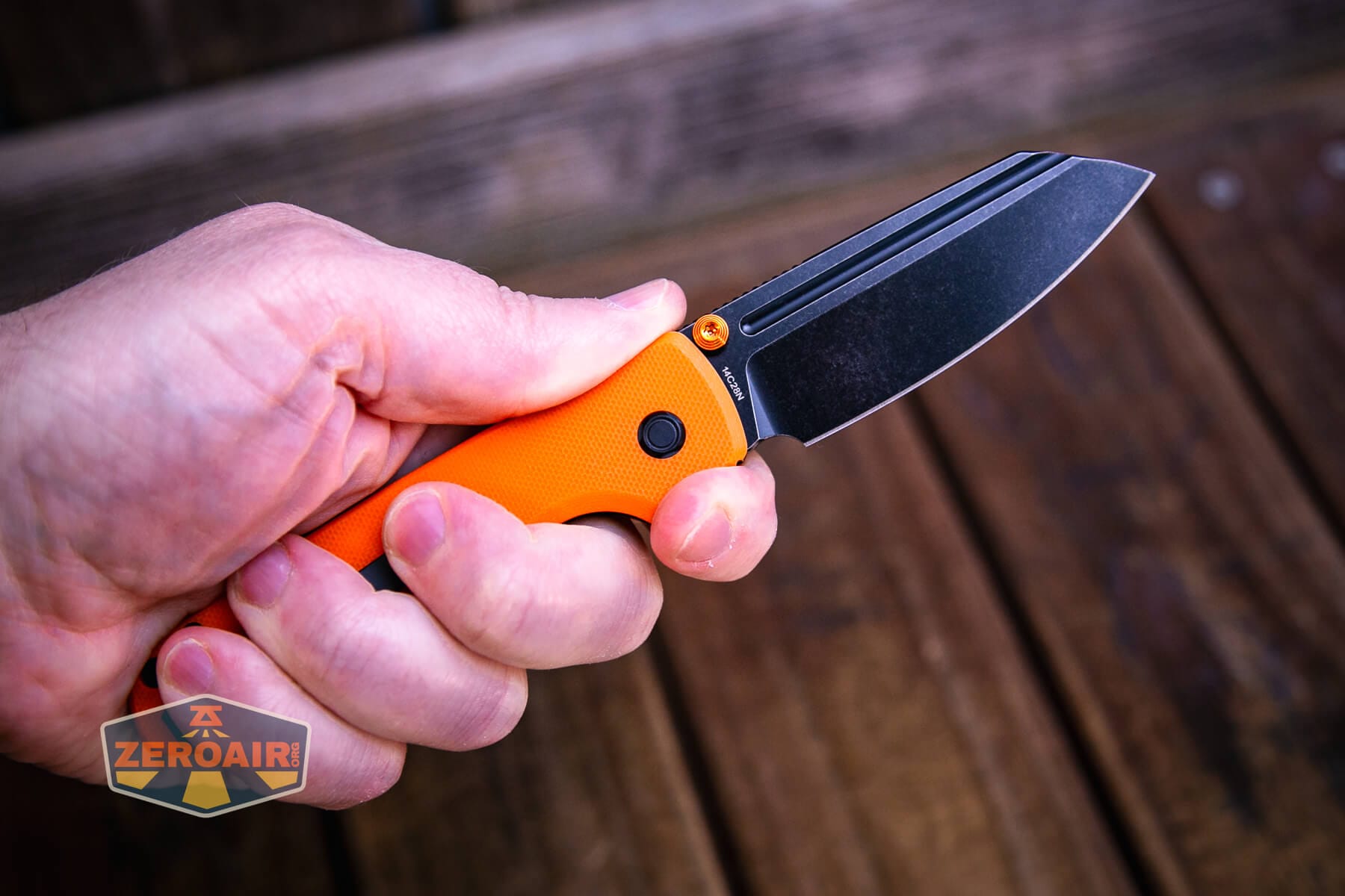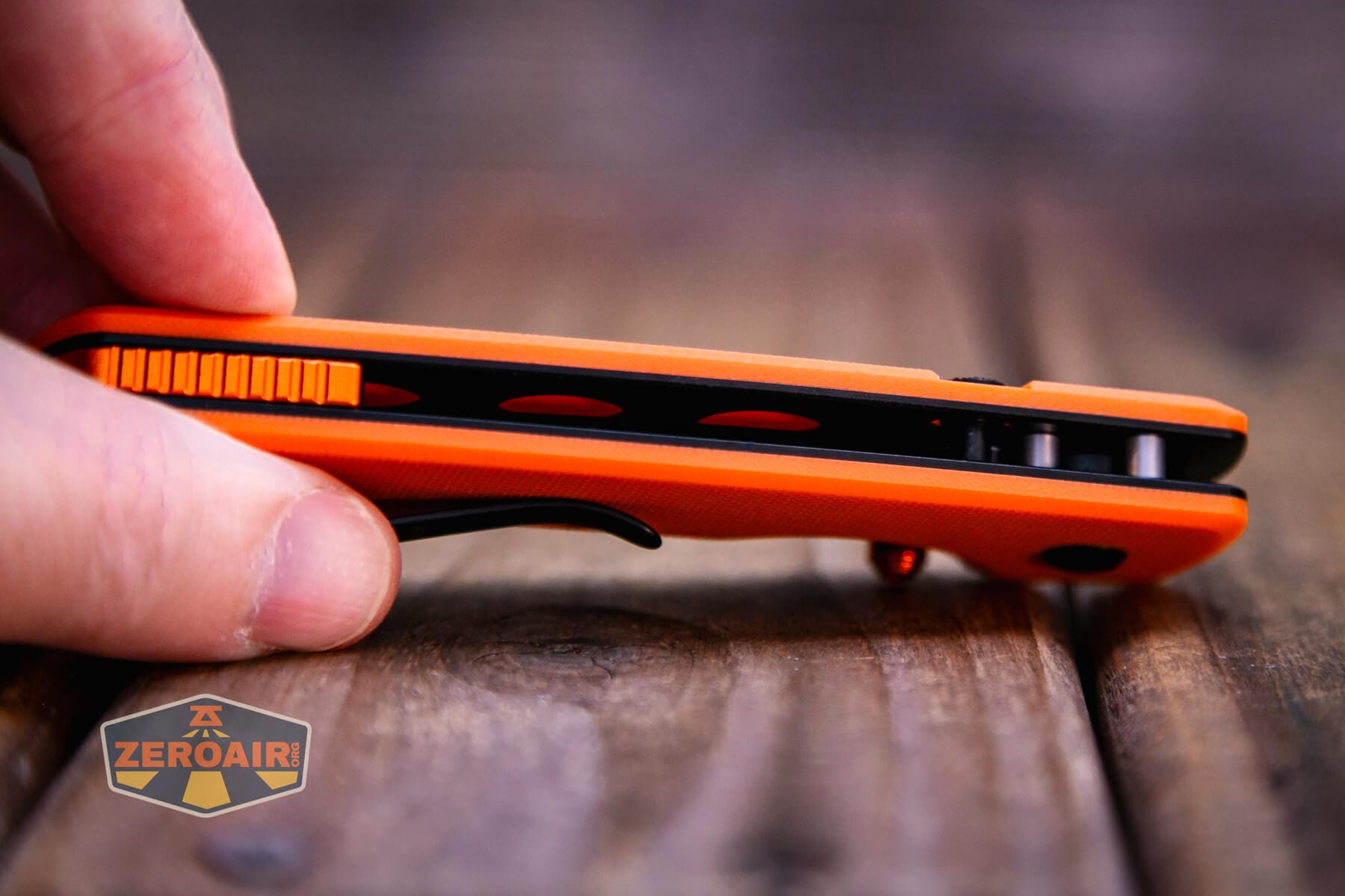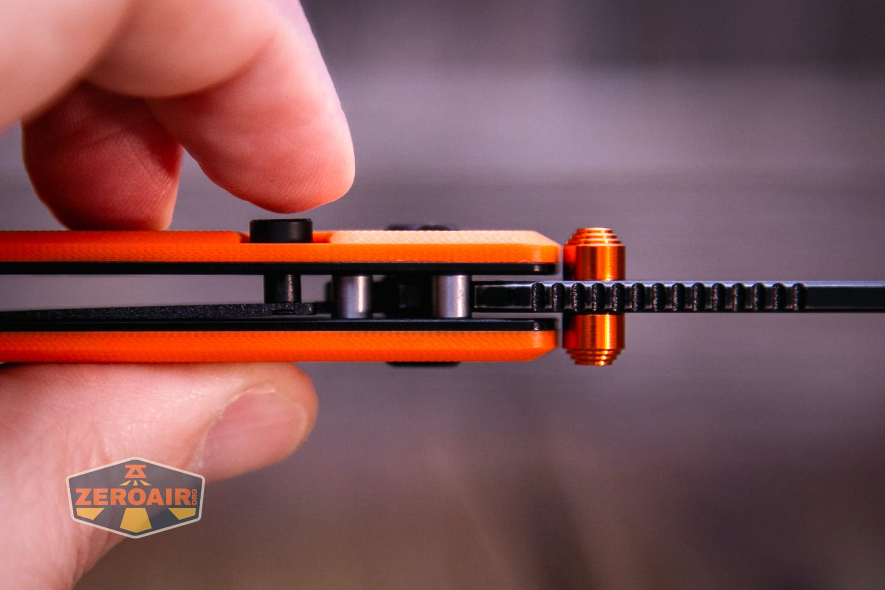 The Vosteed Raccoon TLL Orange G10 knife is a nice knife, made even better with this updated blade shape and orange G10. The button lock on this ceramic ball-bearing knife works great for actuating the top liner lock. The Vosteed Raccoon TLL Orange G10 knife is just a nice, fun, and reasonably priced knife!