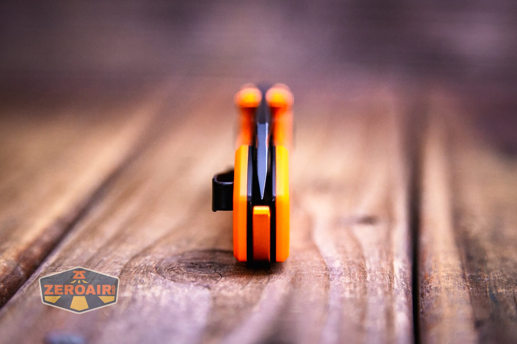 Vosteed Raccoon TLL Orange G10 knife blade centering view