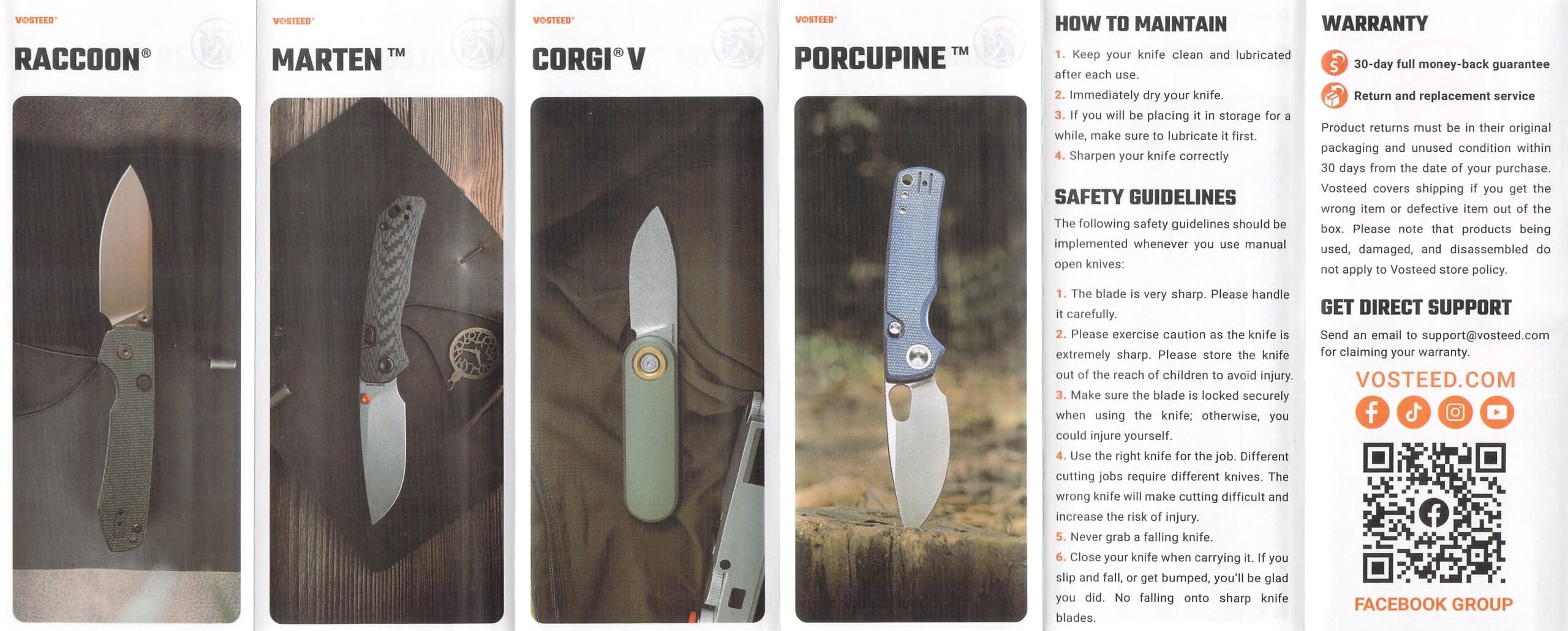 Vosteed Raccoon TLL Orange G10 knife what's included