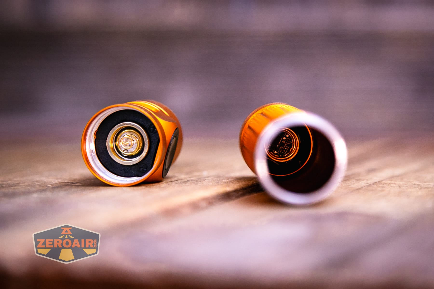 Next is the magnet in the tailcap. This is also used to firmly connect the light to the proprietary charge base, but it’s strong enough to hold the light in place, too.