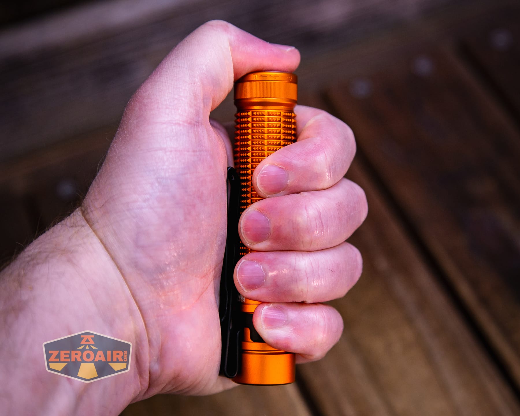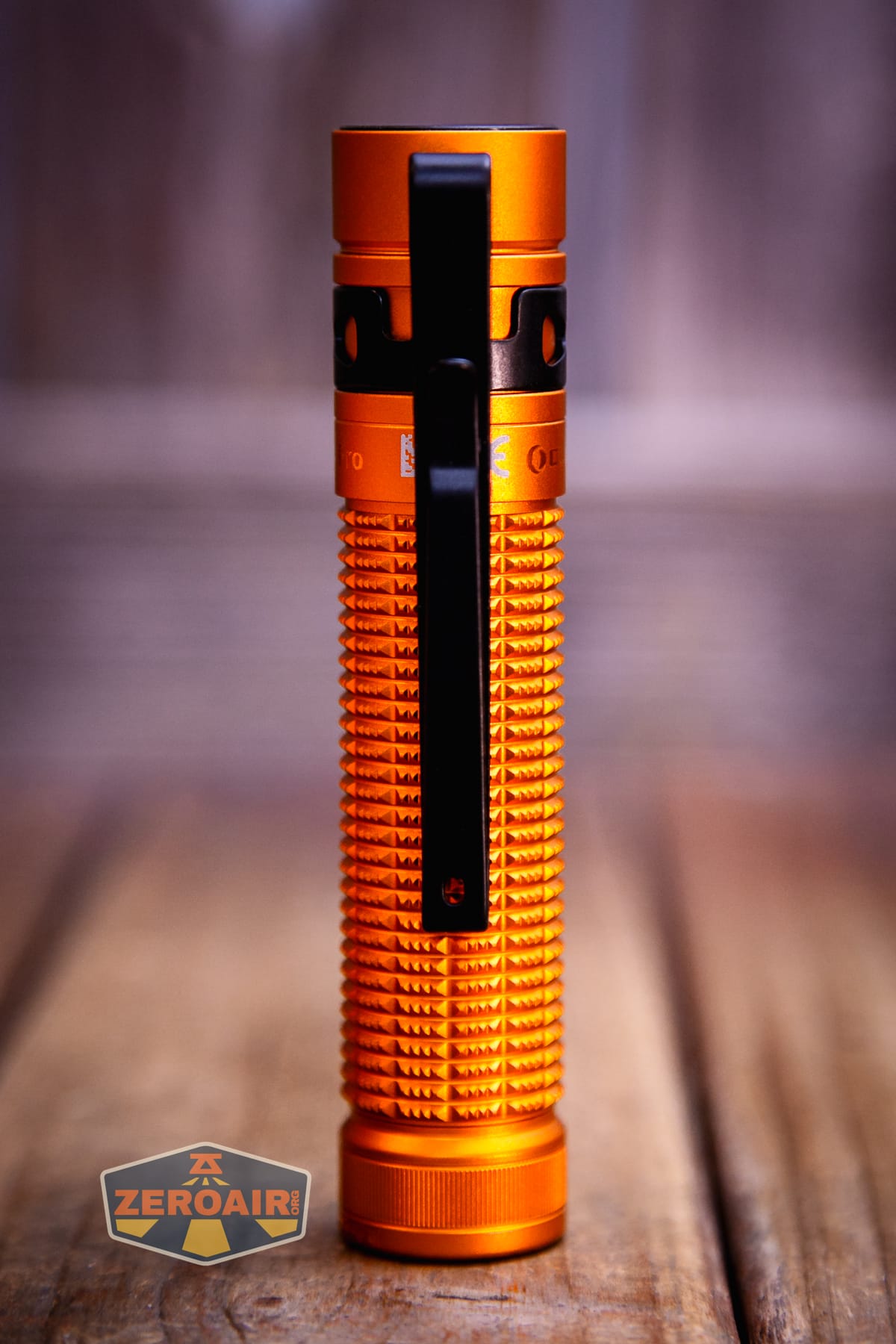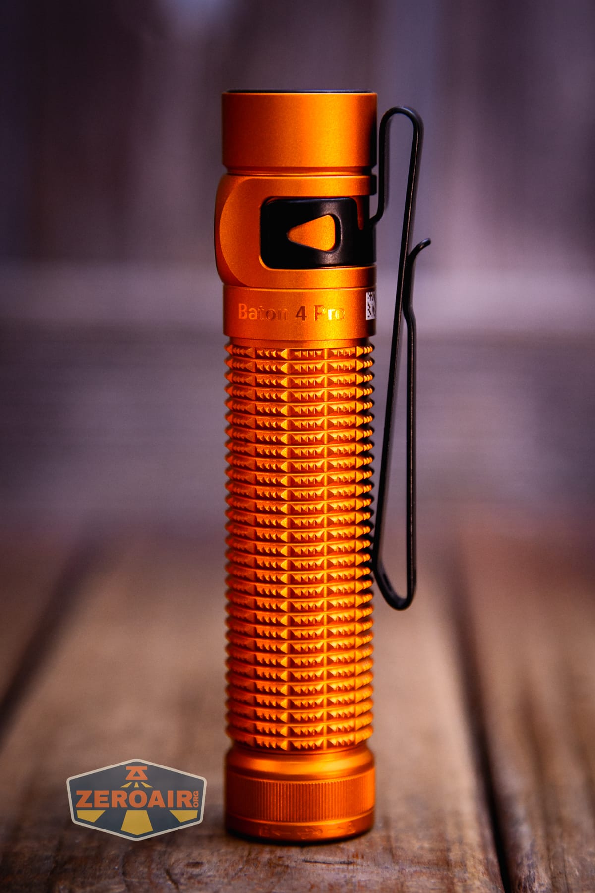The Olight Baton 4 Pro flashlight features a two-way clip, which I don’t often love, but this is a reasonable implementation – being two-way doesn’t cause too much extra size.