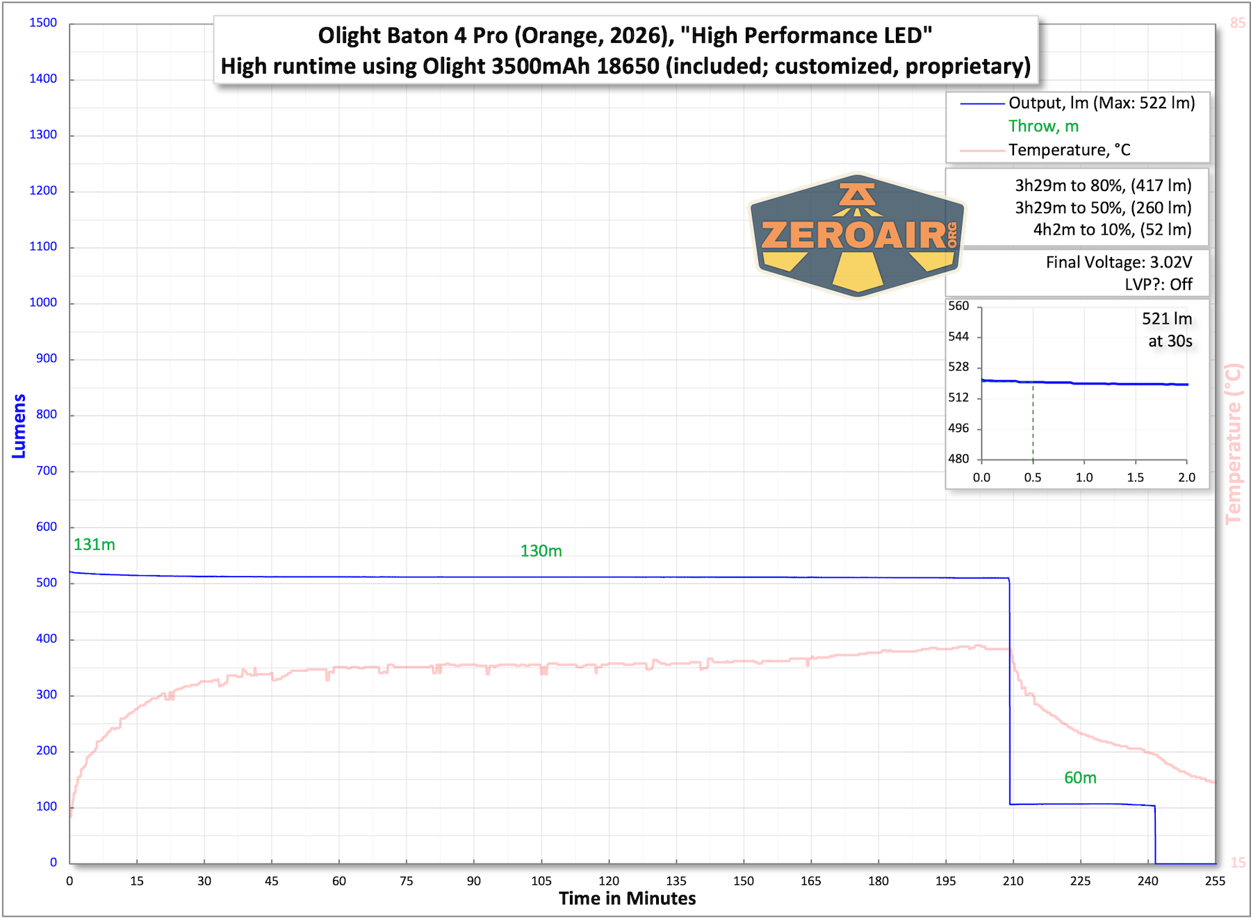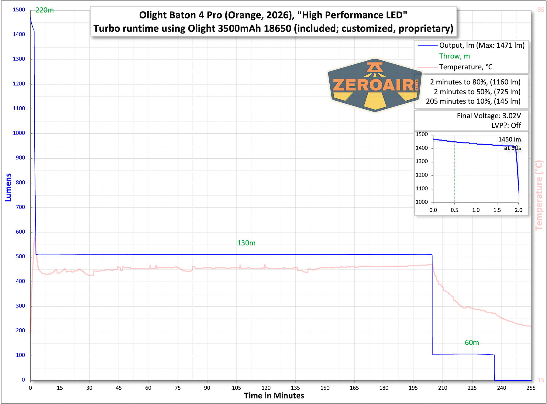 | Measured Lumens (at 30s) | 1450 (90.6% of claim)^ |