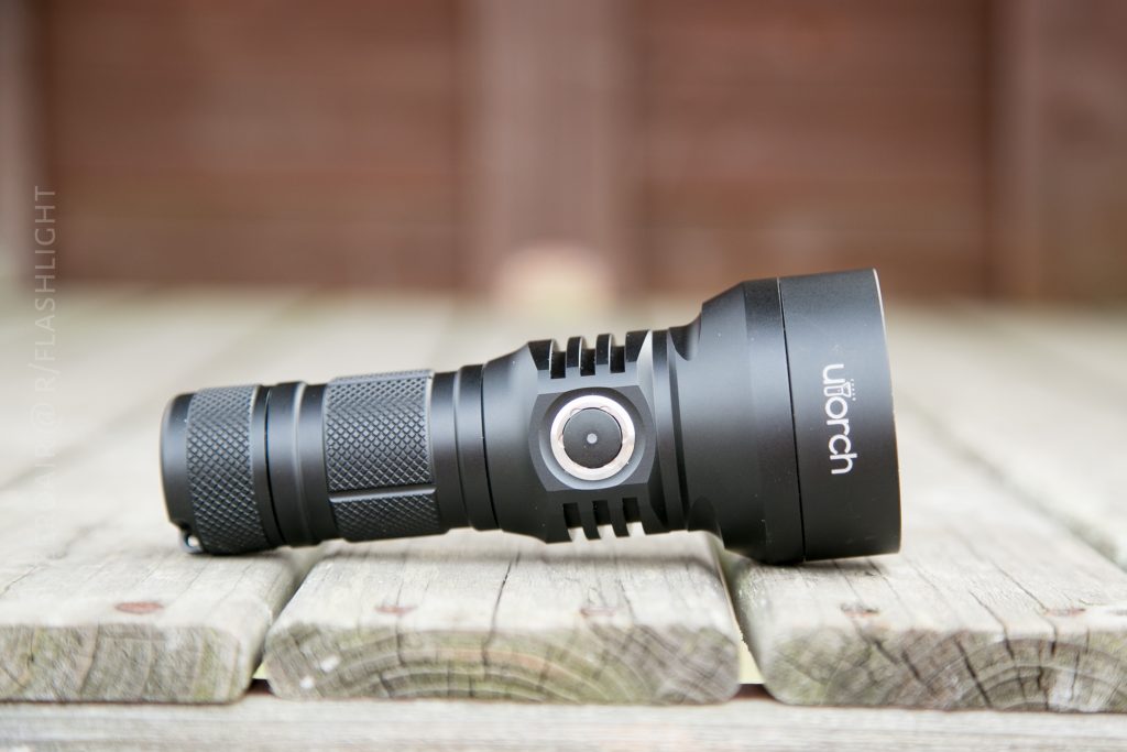 The Utorch UT02 flashlight is a great choice for a handheld thrower since it uses a Cree XHP35 HI emitter. The 26650 gives good runtimes.